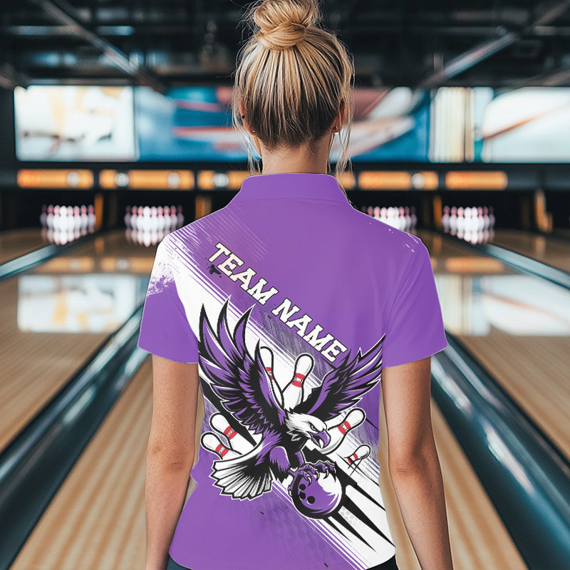 Custom Purple Eagle Bowling Jerseys, Eagle Bowling Women Polo Shirts Team Bowlers Uniform IPHW8788