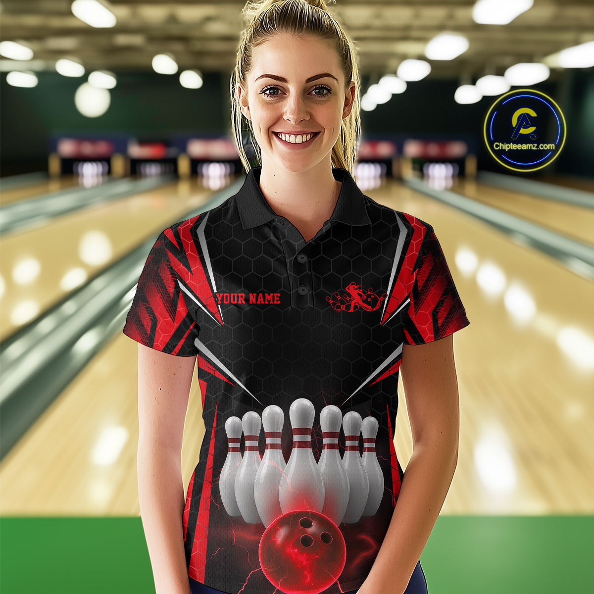 Custom Black And Red Bowling Team Jerseys, Bowler Uniform Bowling Polo Shirts For Women IPHW9283