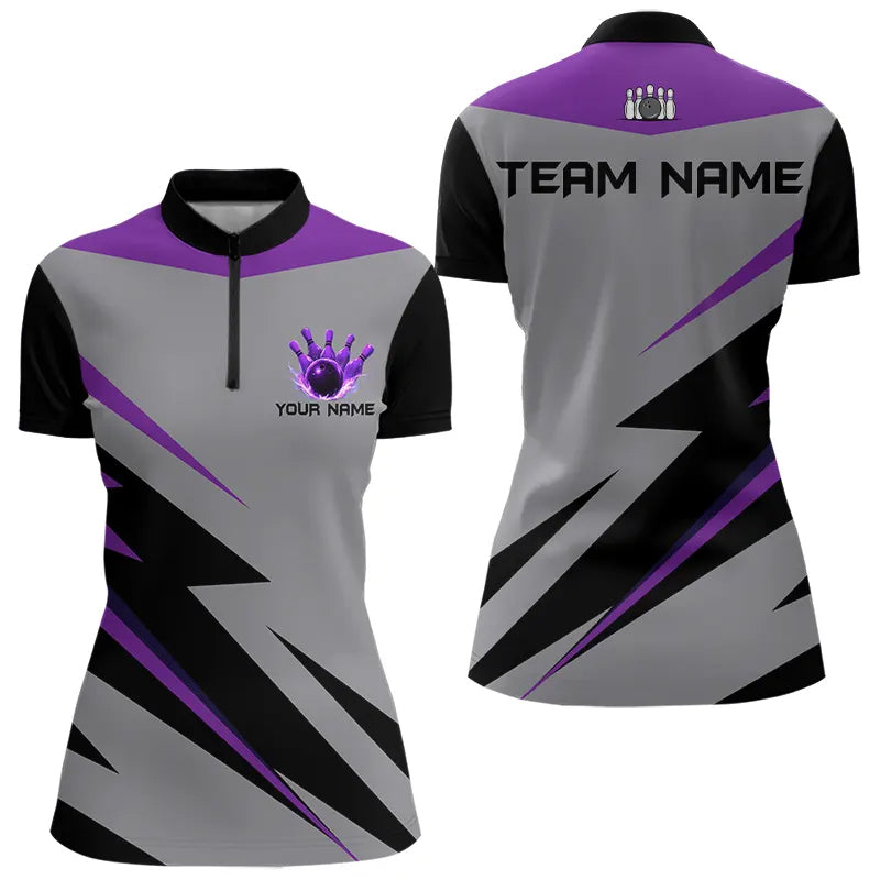 Purple lightning Bowling Polo, Quarter Zip shirts For Women custom bowling team jerseys Bowler Outfits NQS9412