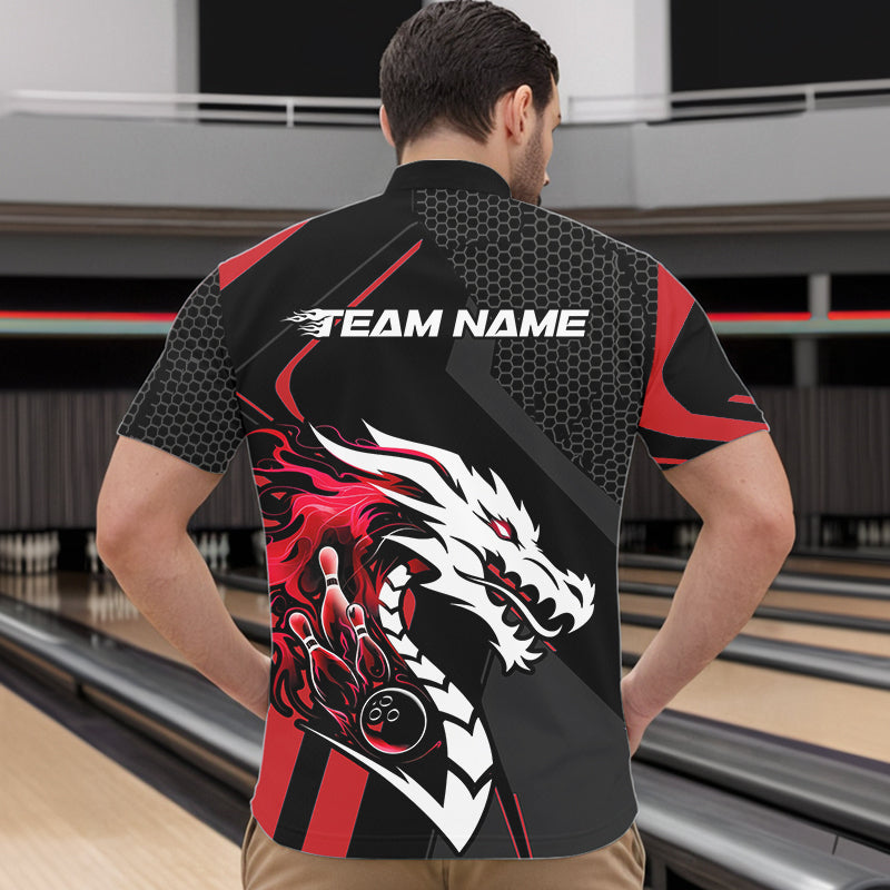 Custom Black And Red Dragon Bowling Jerseys, Bowling Team Men Quarter-Zip Shirts Bowlers Outfit IPHW8701