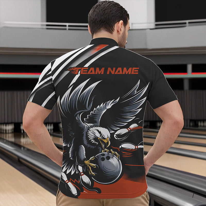 Custom Black And Orange Eagle Bowling Jerseys, Bowling Team Men Quarter-Zip Shirts Bowlers Outfits IPHW8888
