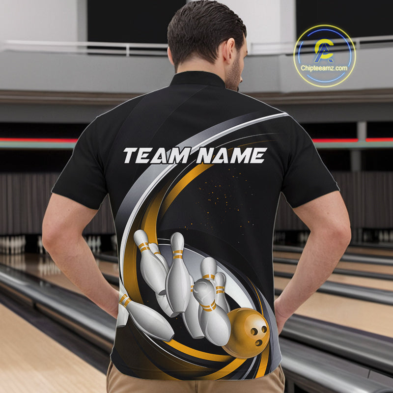 Custom Black Yellow Bowling Team Jerseys, Bowler Uniform Bowling Quarter-Zip Shirts For Men IPHW9278