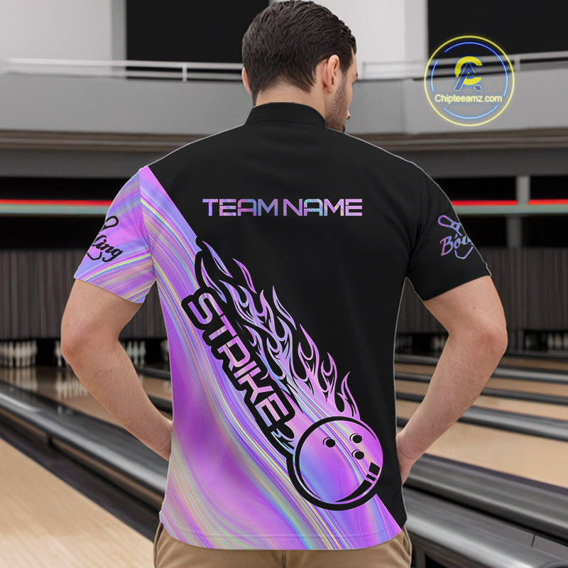 Custom Hologram Flame Strike Bowling Quarter-Zip Shirts For Men, Bowling Team Bowler Outfit IPHW9858