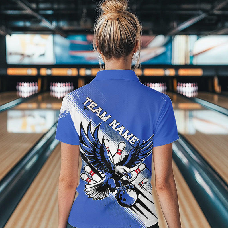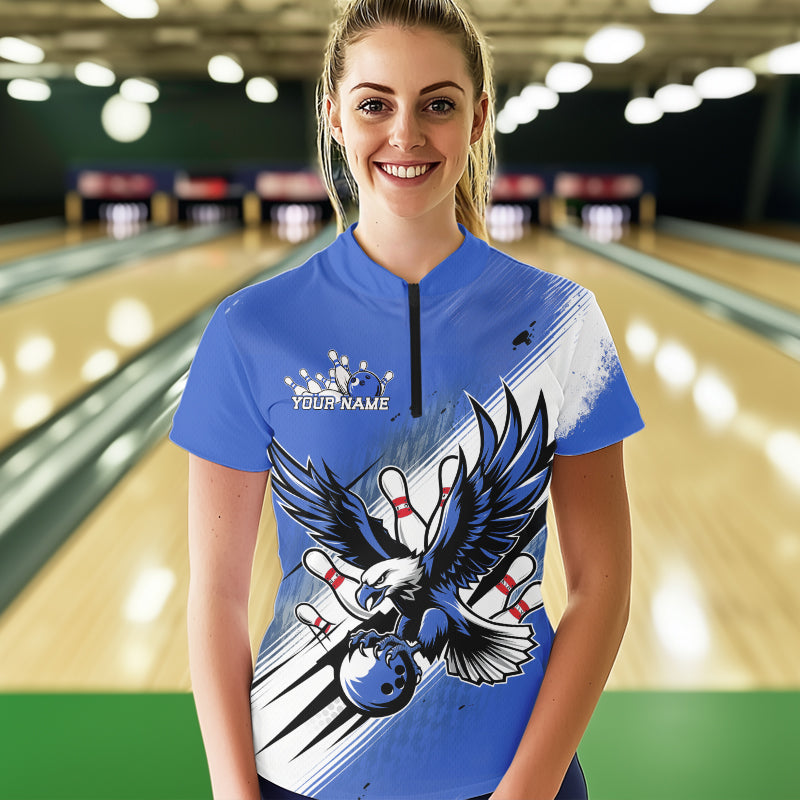 Custom Blue Bowling Jerseys, Eagle Bowling Women Quarter-Zip Shirts Team Bowlers Uniform IPHW8789