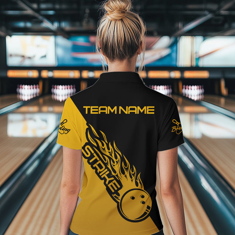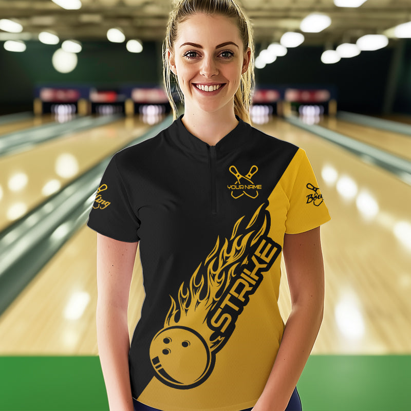 Black And Golden Custom Strike Bowling Women Quarter-Zip Shirts, Bowling Team Bowler Outfit IPHW8825