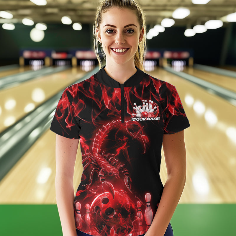 Custom Black Red Flame Scorpion Zodiac Bowling Women Quarter-Zip Shirt Bowler Outfit IPHW8973