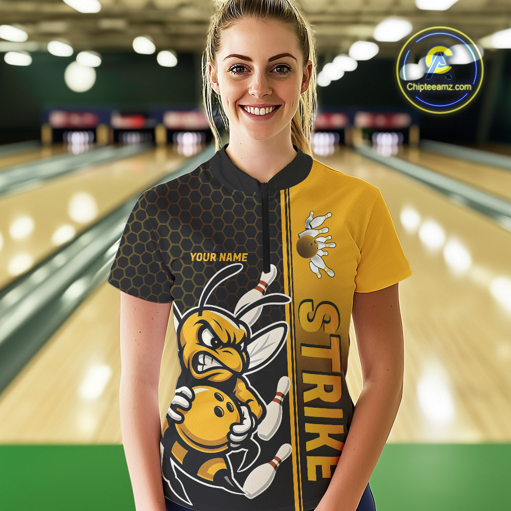 Custom Strike Bee Bowling Quarter-Zip Shirts For Women, Bee Bowling Team Bowlers Outfit IPHW9047