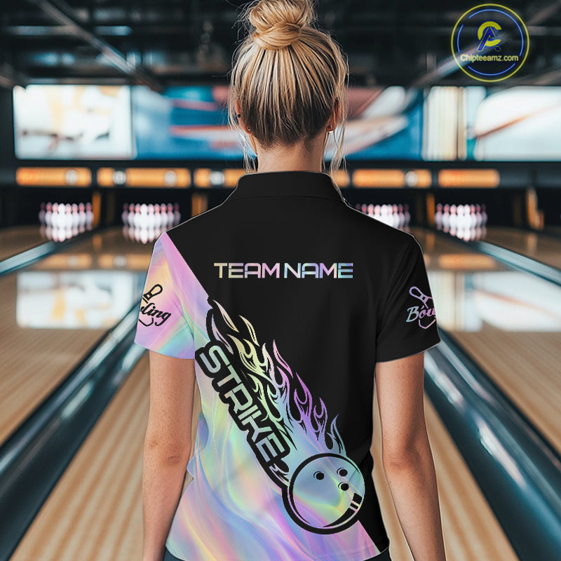 Custom Hologram Flame Strike Bowling Women Quarter-Zip Shirt, Bowling Team Bowler Outfit IPHW9860