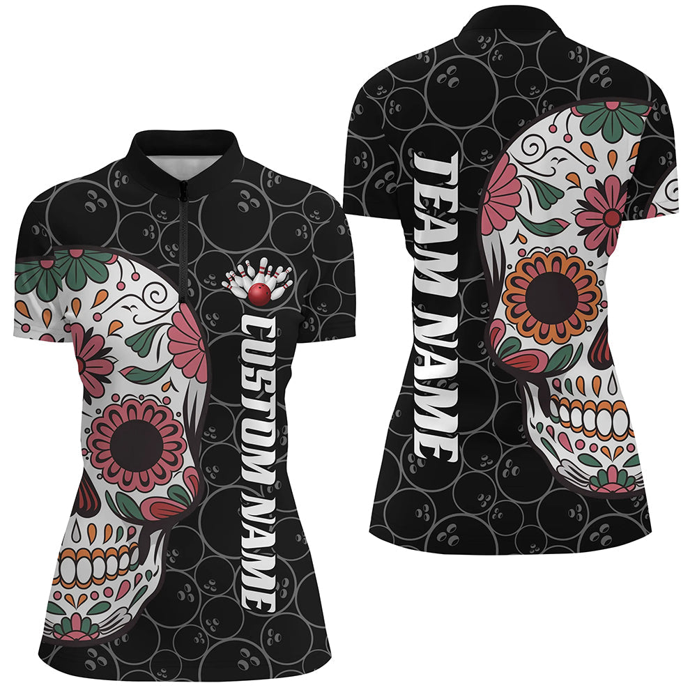 Custom Sugar Skull Ladies Bowling Shirts, Halloween Bowling Team Shirts Bowlers Outfits IPHW7427