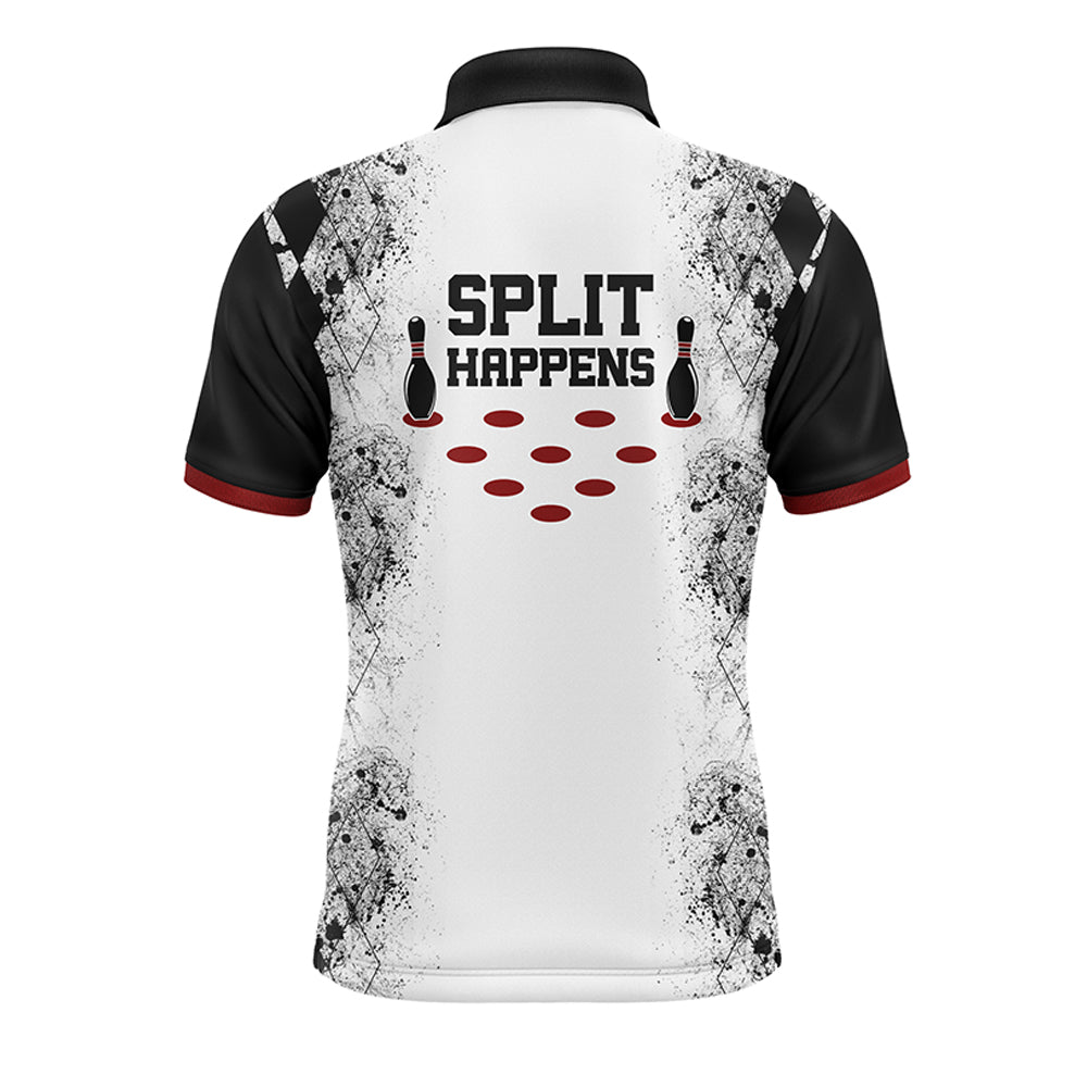 Split Happens Personalized Bowling Shirt for Men League Bowling Jersey with Name Men Polo Shirt NBP136