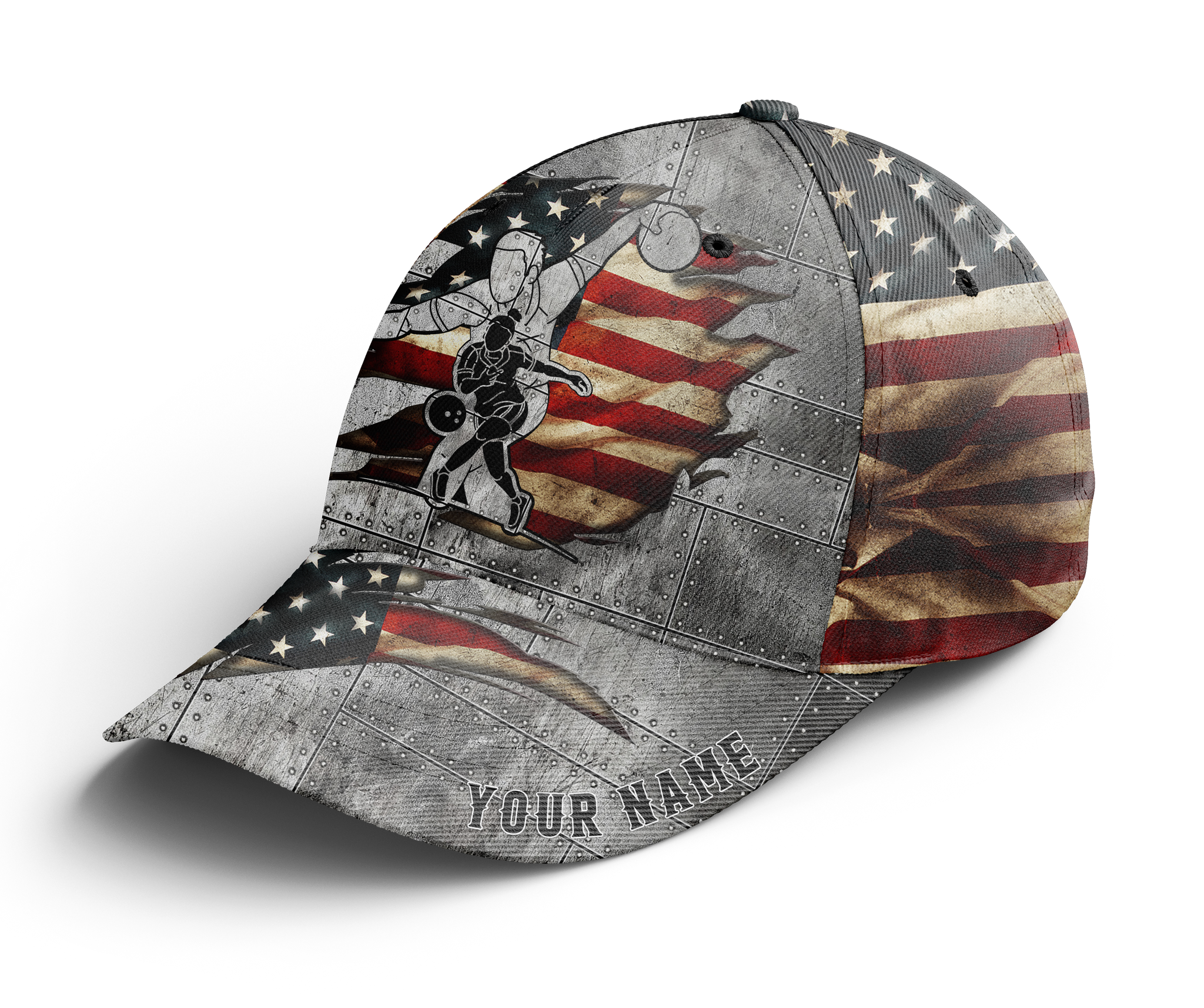 American Flag Bowling Hat for Men Women Custom Bowling Cap for Team Bowlers Gift  BDT430
