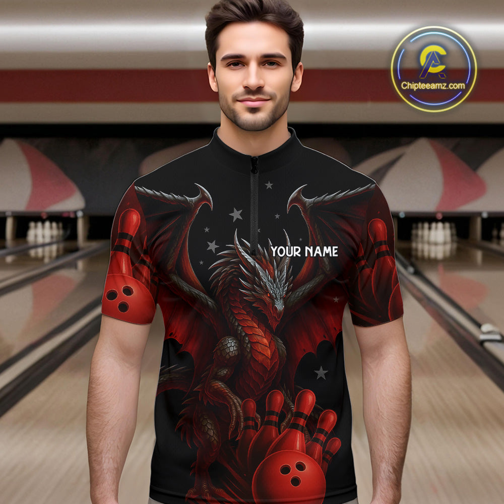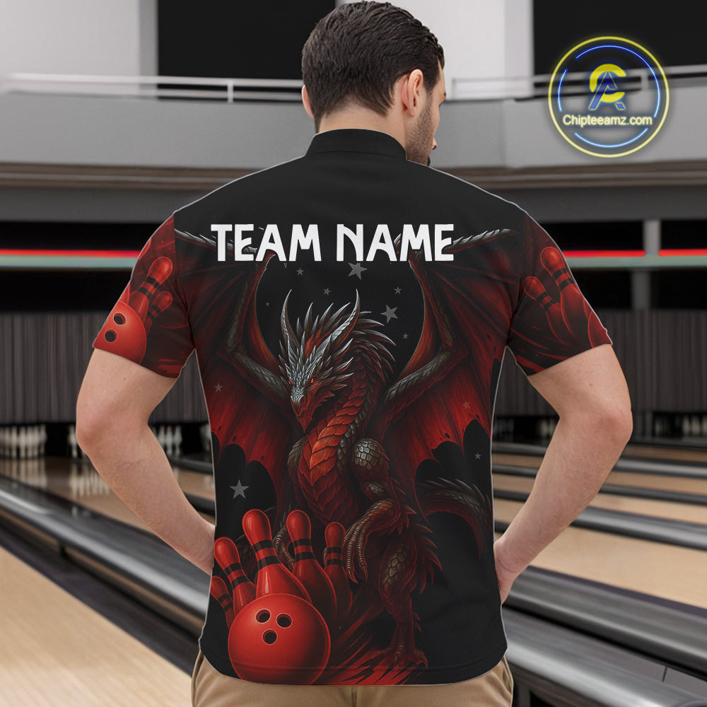Black And Red Dragon Bowling Shirts For Men Custom Name Team Bowling League Jersey, Bowling Gifts NQS11091