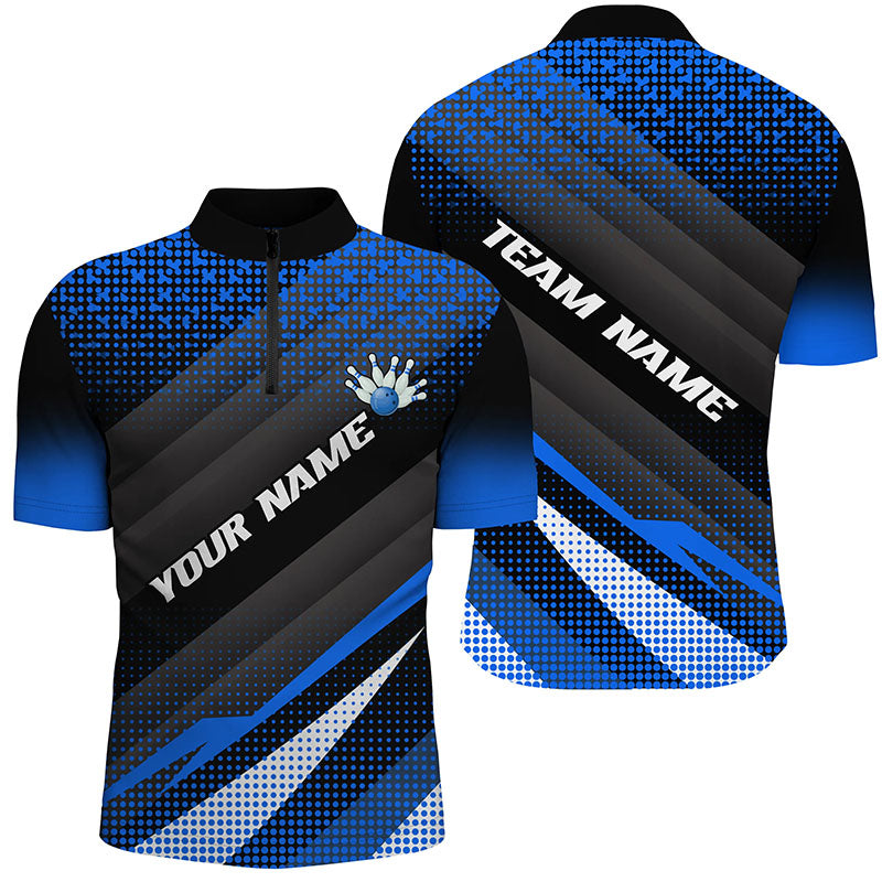 Blue Bowling Custom Men Bowling Polo, Quarter zip Shirts Bowling Team Jerseys Bowling Tournament NQS8884