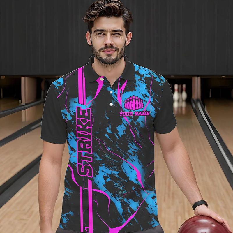 Custom Blue And Pink Strike Bowling Shirts Men Polo Camo Bowling Team Jerseys Bowling League IPHW5387