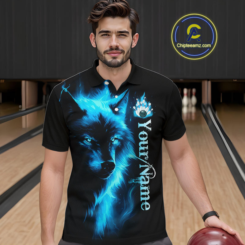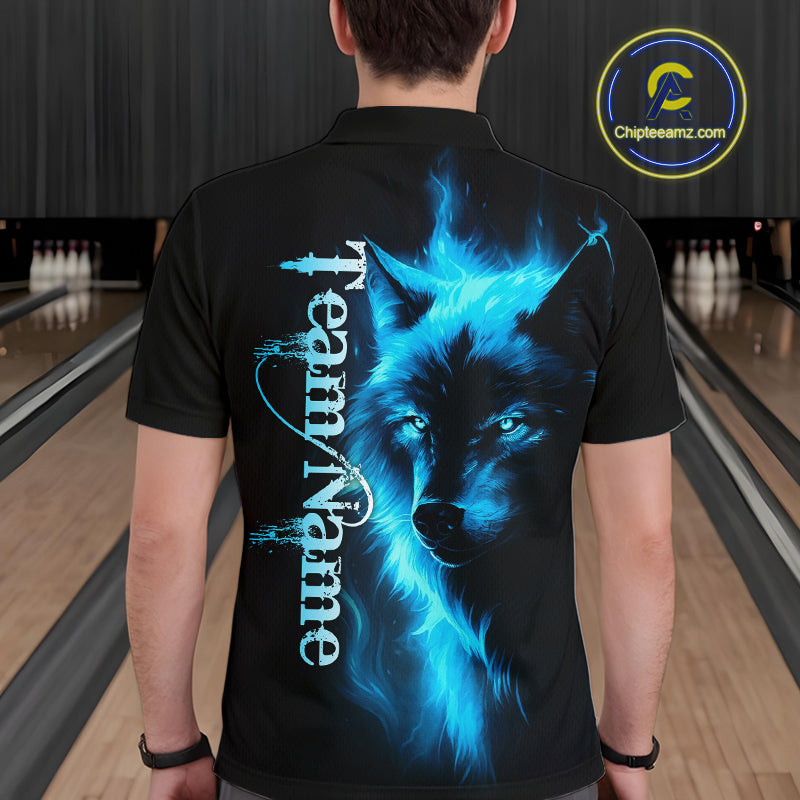 Custom Blue Flame Wolf Bowling Jersey for Men Polo & 1/4 Zip Bowling Team Shirts HNT148