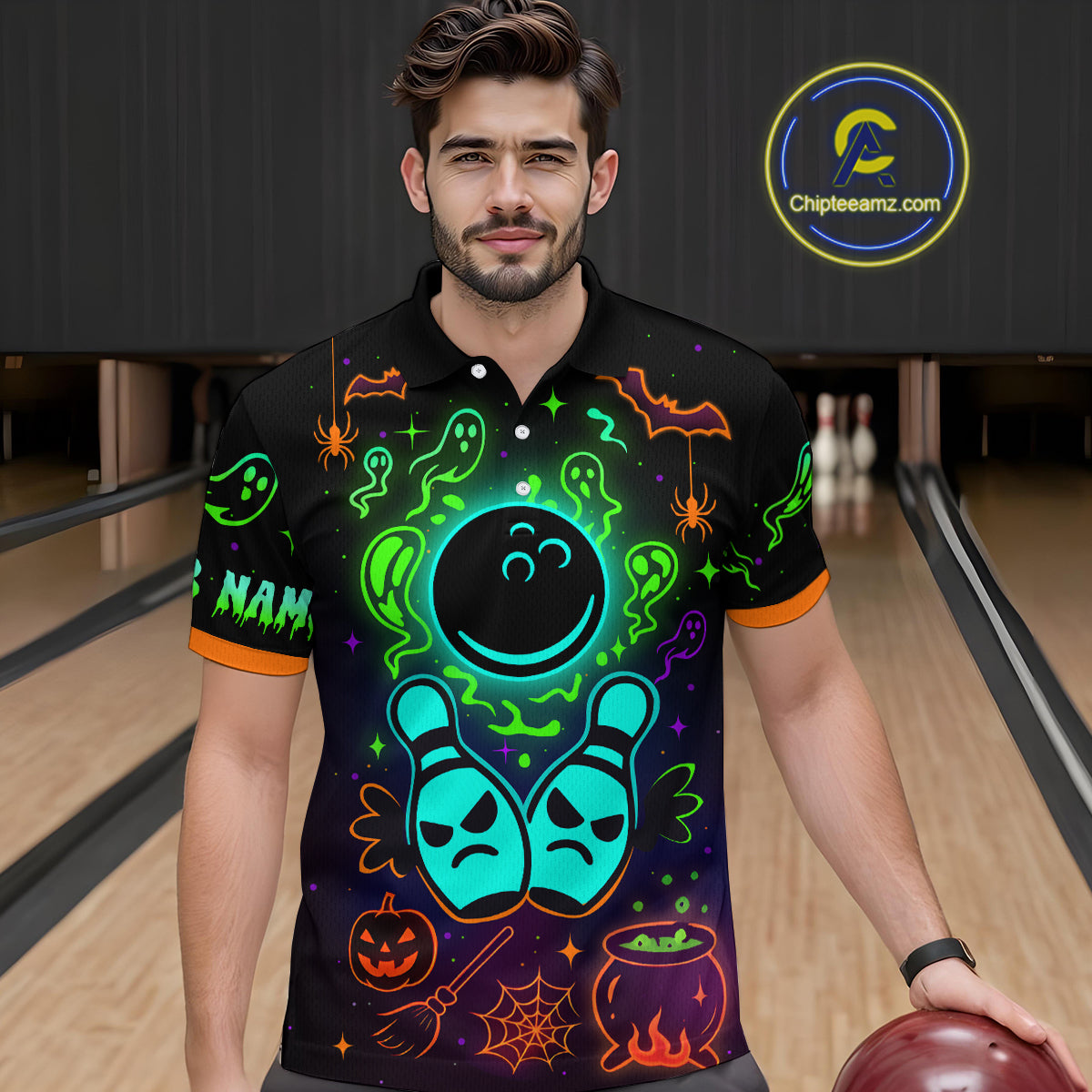 Custom Neon Bowling Team Shirt Halloween Polo & Quarter-Zip Bowling Jersey for Men QZT731