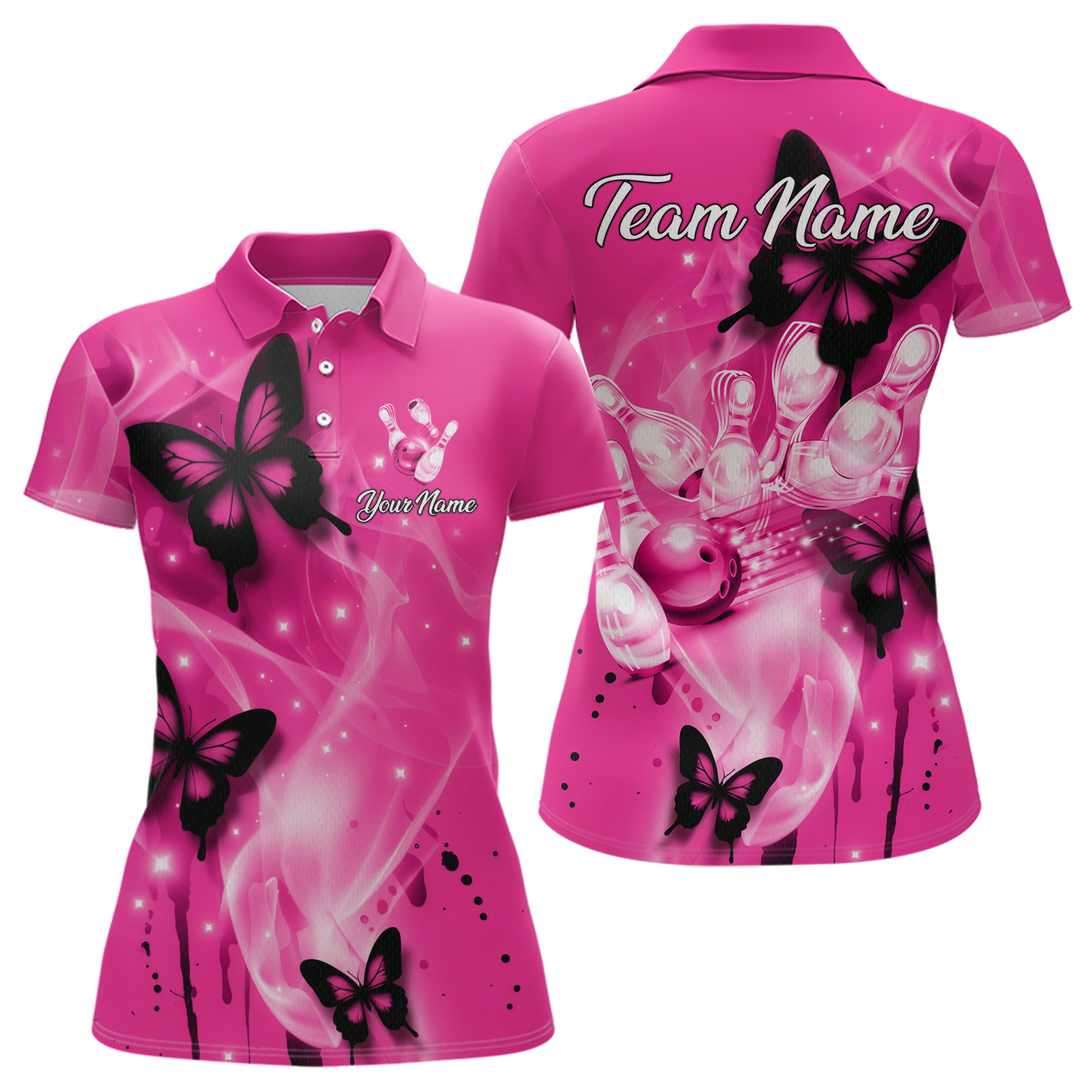 Custom Pink Butterflies Bowling Shirts for Men Women Team MBL120