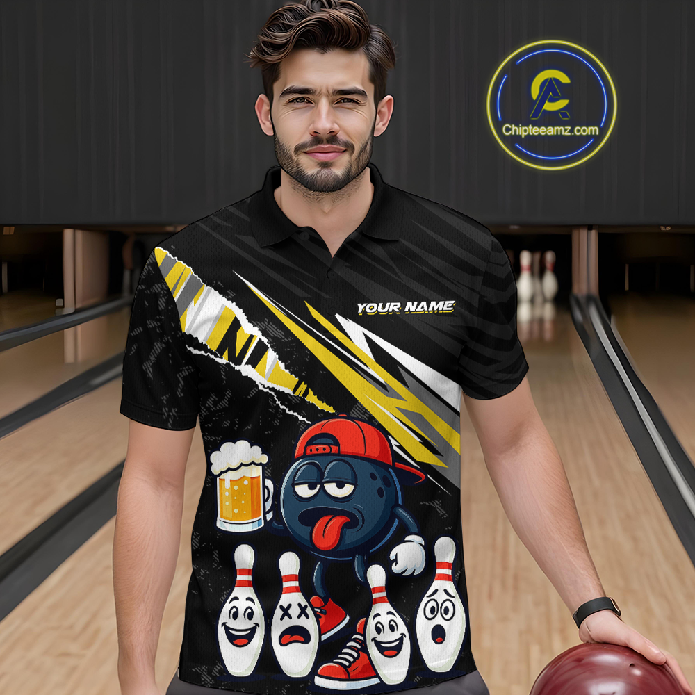 Custom Yellow Beer Bowling Jersey for Men Bowling Team Shirts Bowling Uniform Polo & 1/4 Zip HNT133
