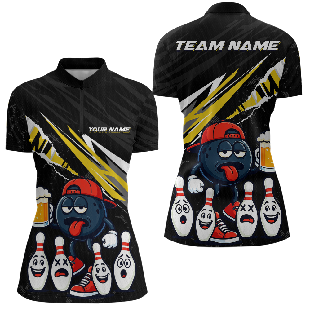 Custom Yellow Beer Bowling Jersey for Women Bowling Team Shirts Bowling Uniform Polo & 1/4 Zip HNT133