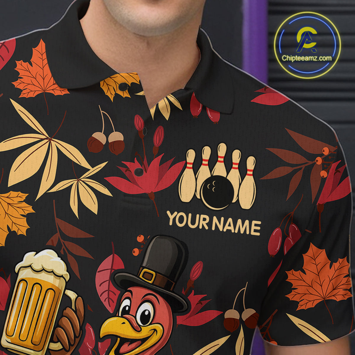 Funny Turkey Bowling Beer Thanksgiving pattern Custom Team bowling jerseys men, bowling gifts for men NQS10963