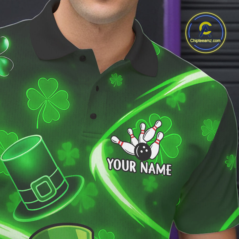 Green shamrock pattern Funny Bowling Shirts For Men Custom St Patrick's Day Lucky Team Bowling Jersey NQS11133