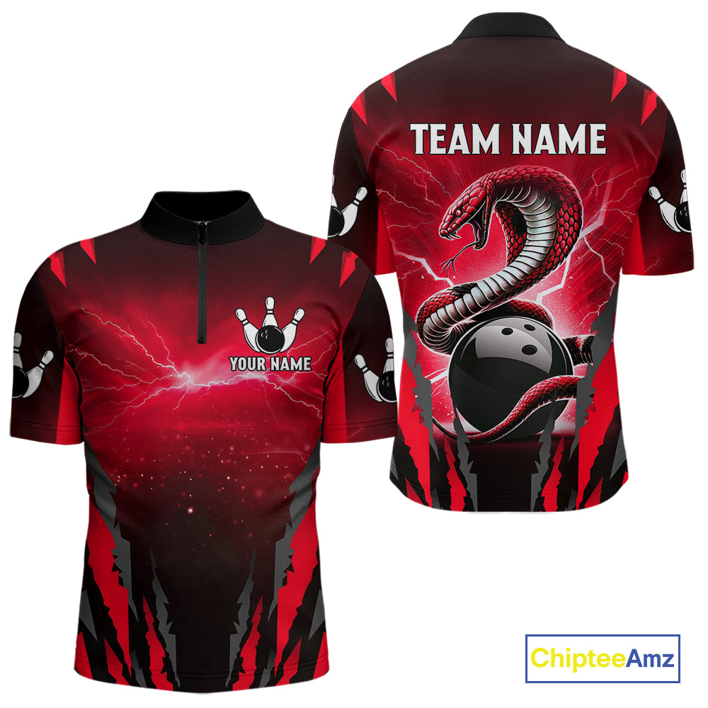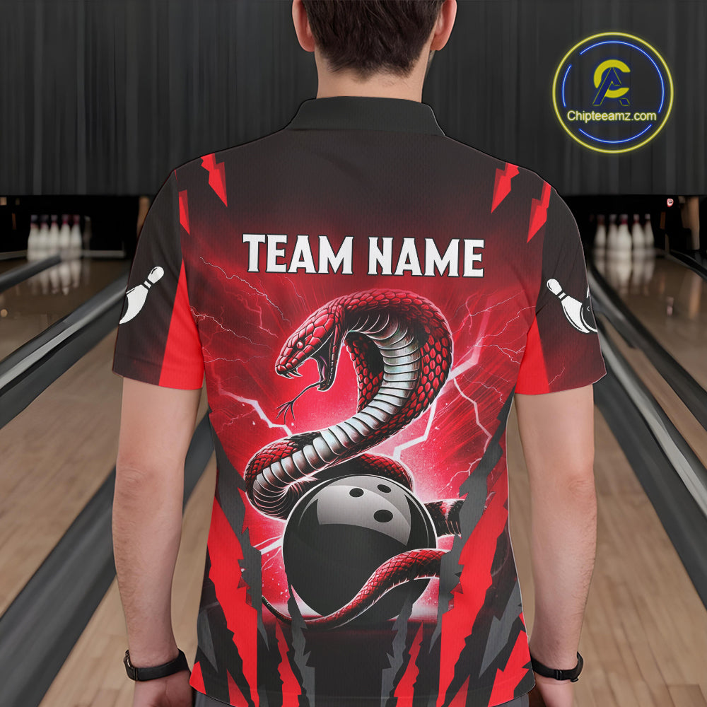 Personalized Thunder Lightning Cobra Snake Bowling Shirts For Men, Red Bowling Team Jersey TDM4644