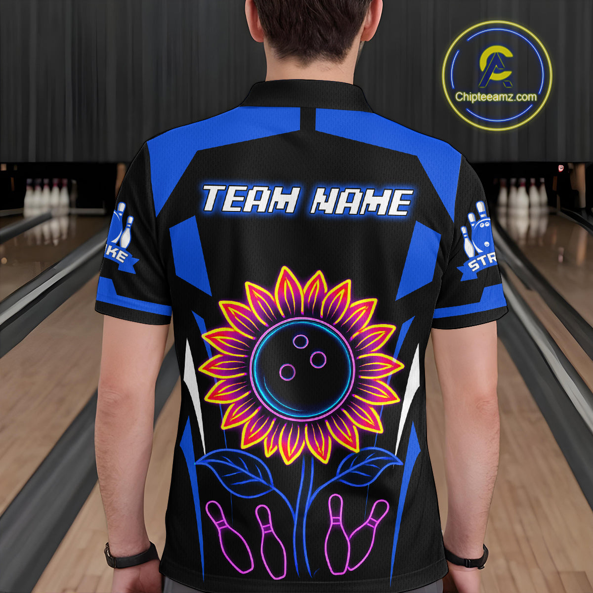 Blue Neon Lightning Sunflower Bowling Shirt for Men Custom Team Bowling Polo Bowling Jersey QZT771
