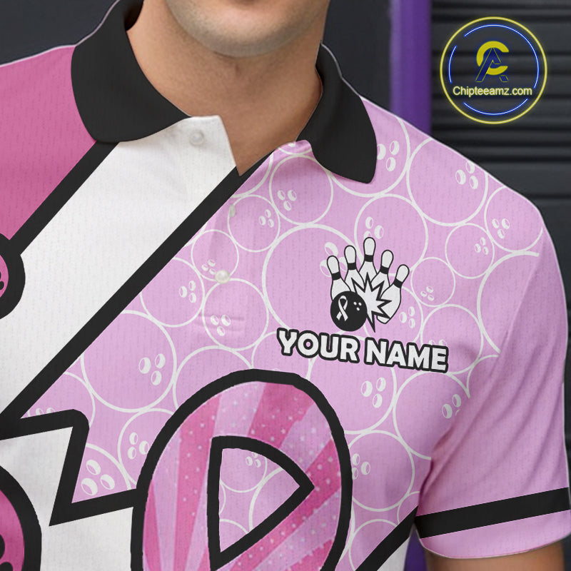 Personalized Pink Ribbons Camo Bowling Shirts For Men, Custom breast cancer bowling Team shirts NQS10533