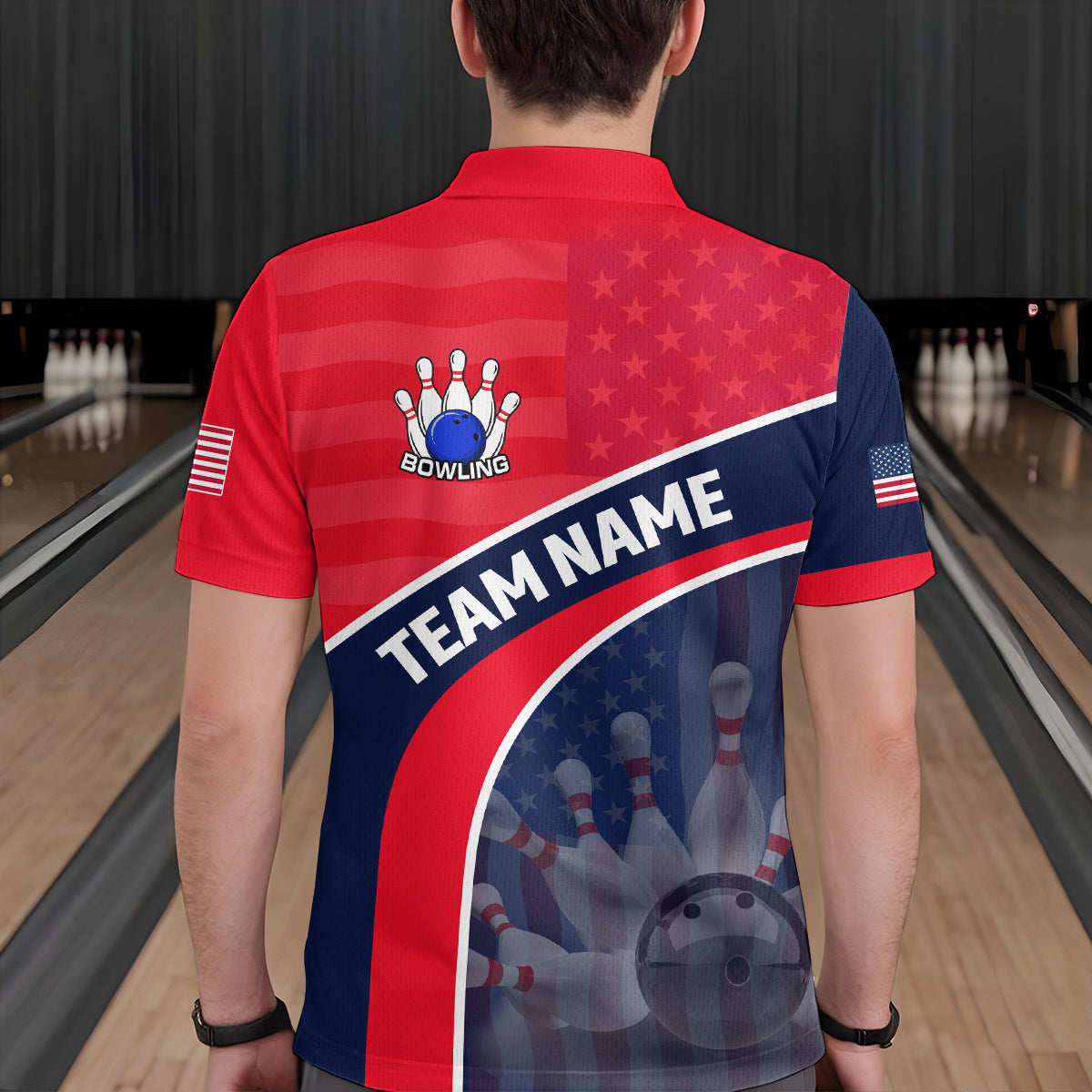 Personalized US Flag Bowling Jersey for Men Bowling Gifts Bowling Team Jersey with Name Polo & 1/4 Zip HNT28