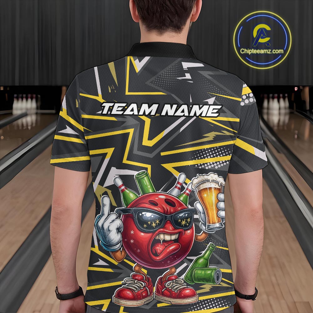 Custom Funny Bowling Ball Drink Beer Bowling Men Polo Shirt, Yellow Bowling Team Shirt IPHW10120