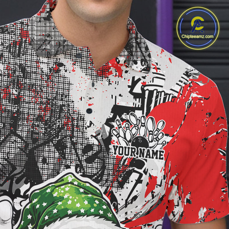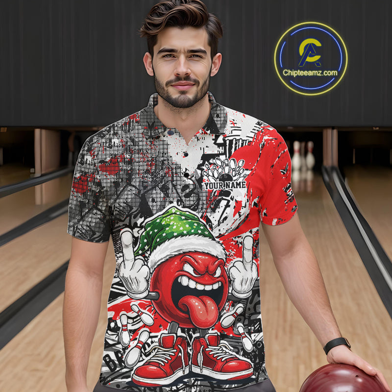 Custom Funny Christmas Bowling Men Polo Shirts, Crazy Bowling Ball Xmas Outfit IPHW10129