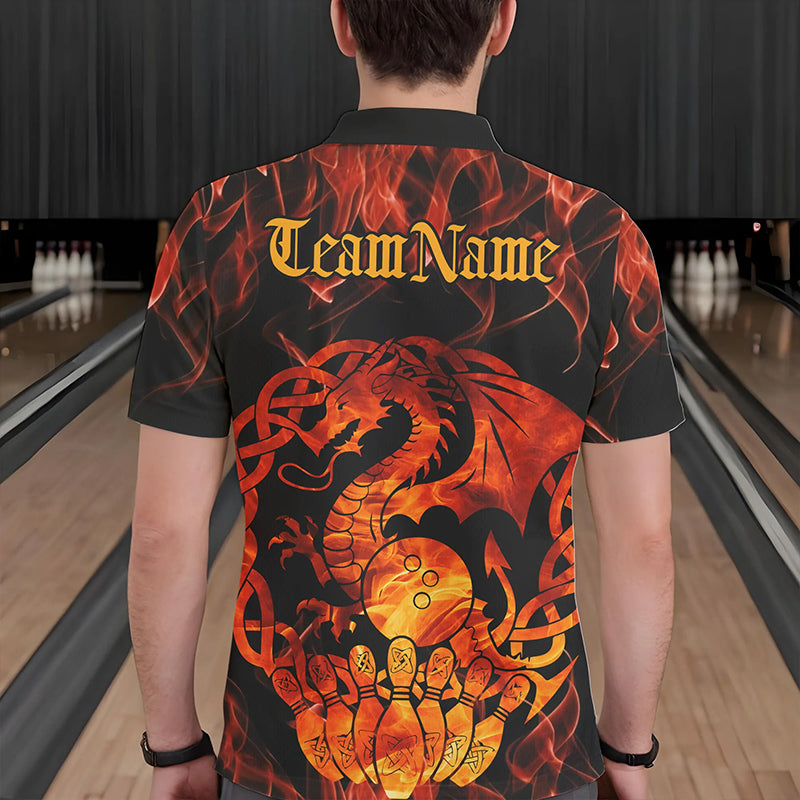 Custom Fire Flame Viking Dragon Bowling Polo Team Shirts For Men, Celtic Bowling Shirts IPHW8587