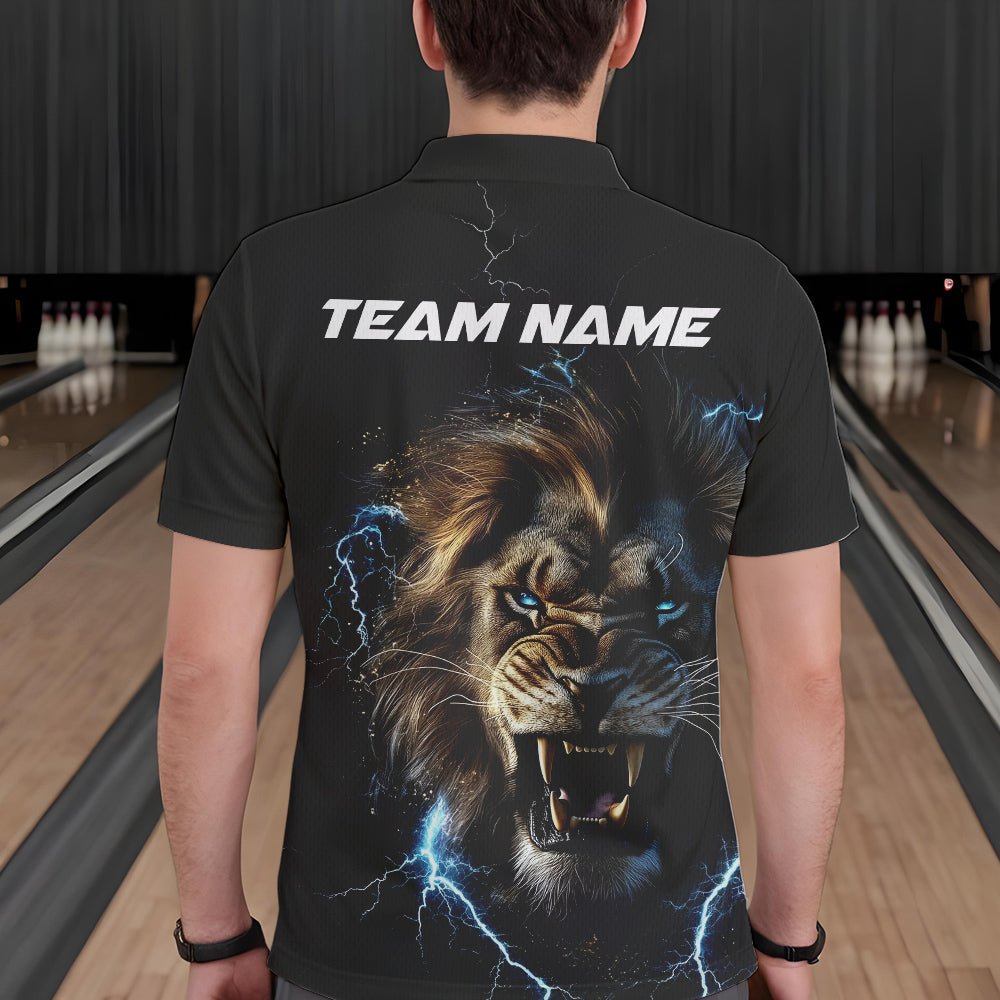 Custom Blue Thunder Lightning Lion Bowling Team Men Polo Shirts, Lion Bowling League Shirt IPHW8985
