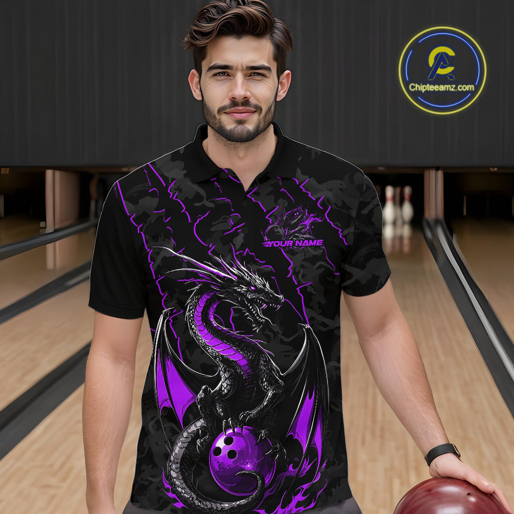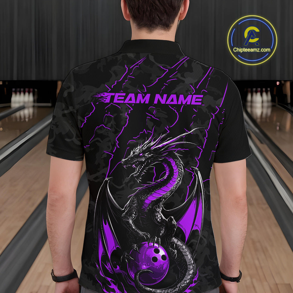 Custom Gray And Purple Camo Dragon Claws Bowling Men Polo Shirts, Team Bowling Jerseys IPHW9856