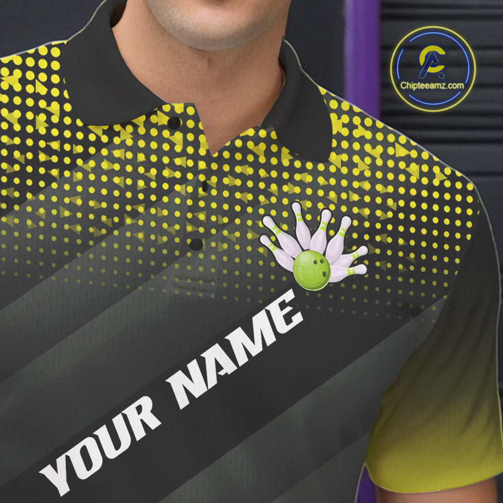 Yellow Bowling Custom Men Bowling Polo, Quarter zip Shirts Bowling Team Jerseys Bowling Tournament NQS10605