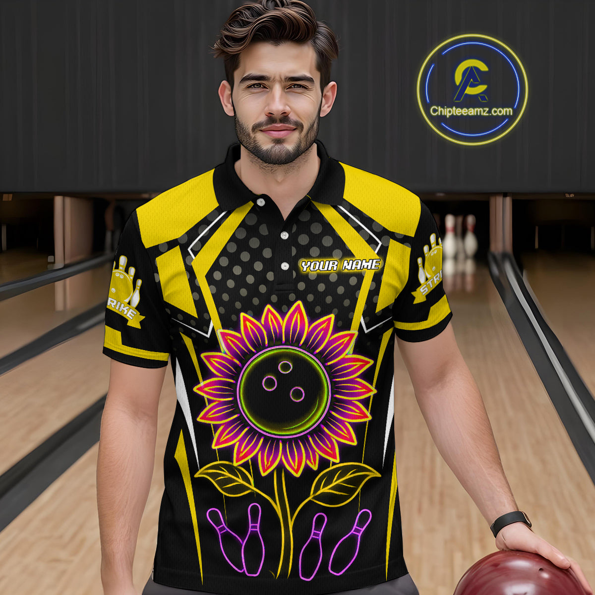 Yellow Neon Lightning Sunflower Bowling Shirt for Men Custom Team Bowling Jersey QZT771