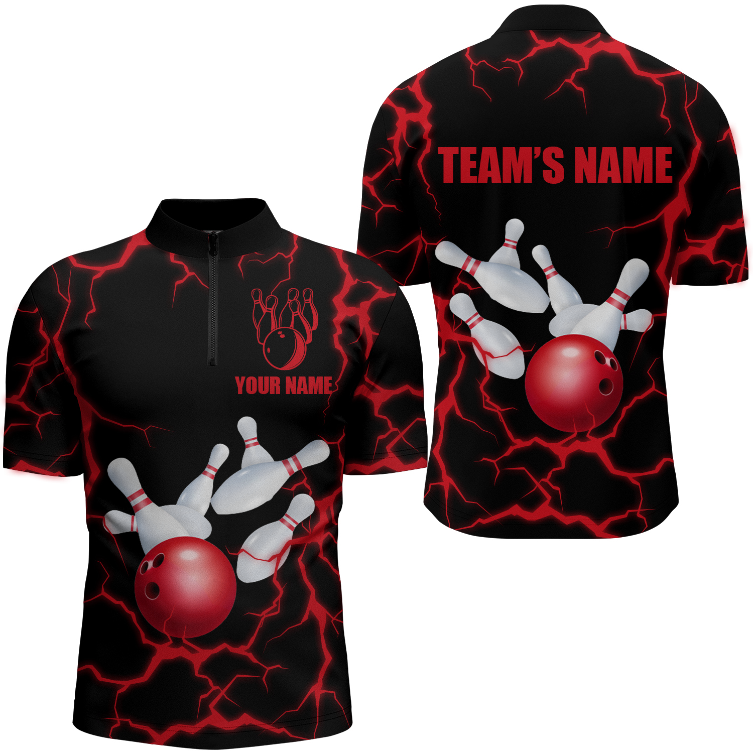 Personalized 3D Men's Bowling Team Jersey Bowling Shirt American Bowling Quarter-Zip Shirt QZT33
