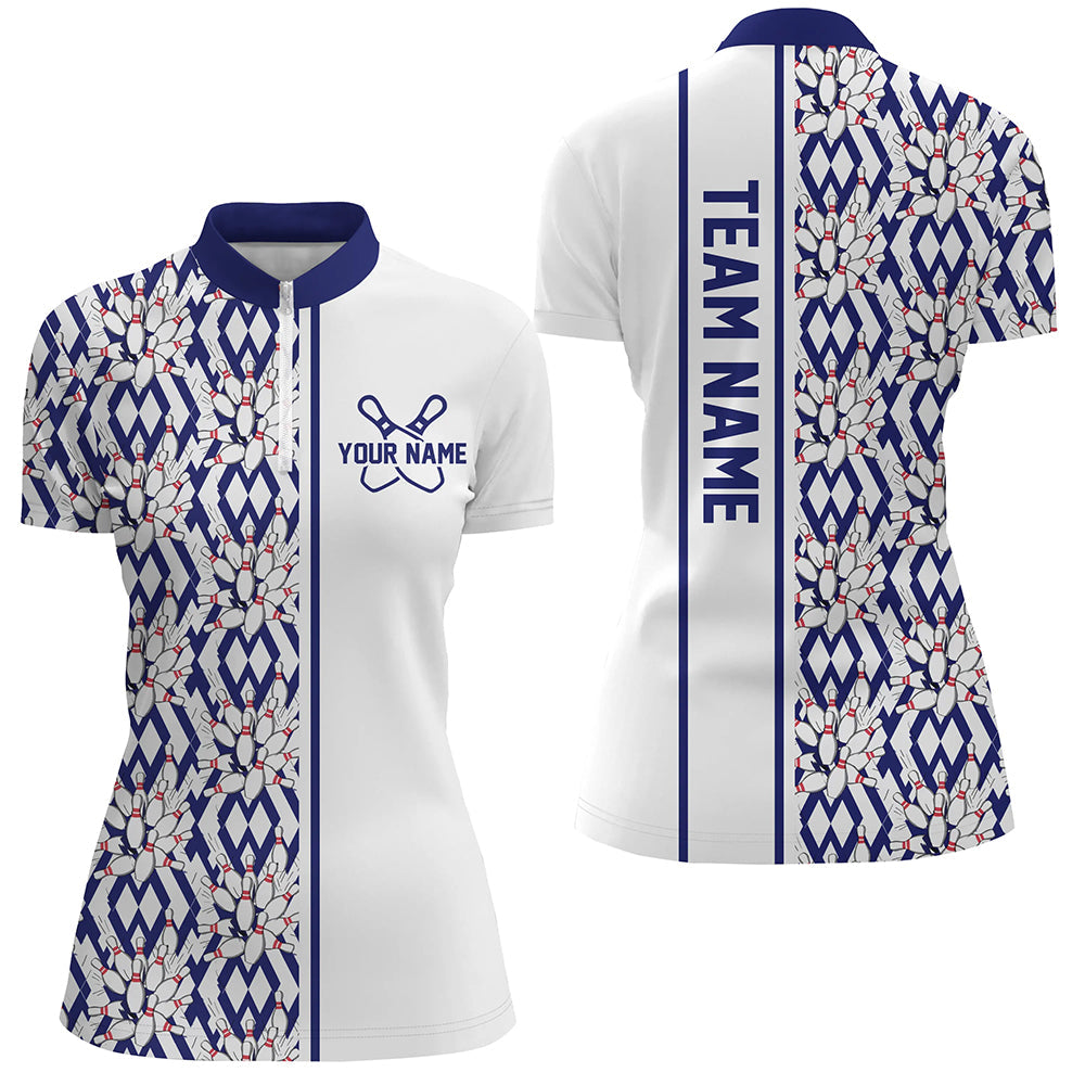 ✔️ Custom Women's Bowling Shirts Our uniquely designed bowling polo and quarter-zip shirts are ideal for proud female bowlers who want to make a bold statement. With a stylish form and distinctive design, these shirts set you apart from the rest, highlighting your passion and confidence in bowling. Add your personal touch to create a one-of-a-kind shirt that carries your unique imprint.