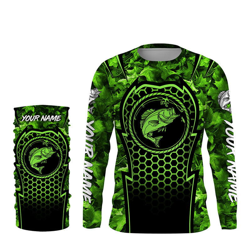 Bass Fishing green camouflage sun protection Custom name long sleeve fishing shirt for men, women, Kid NQS4254