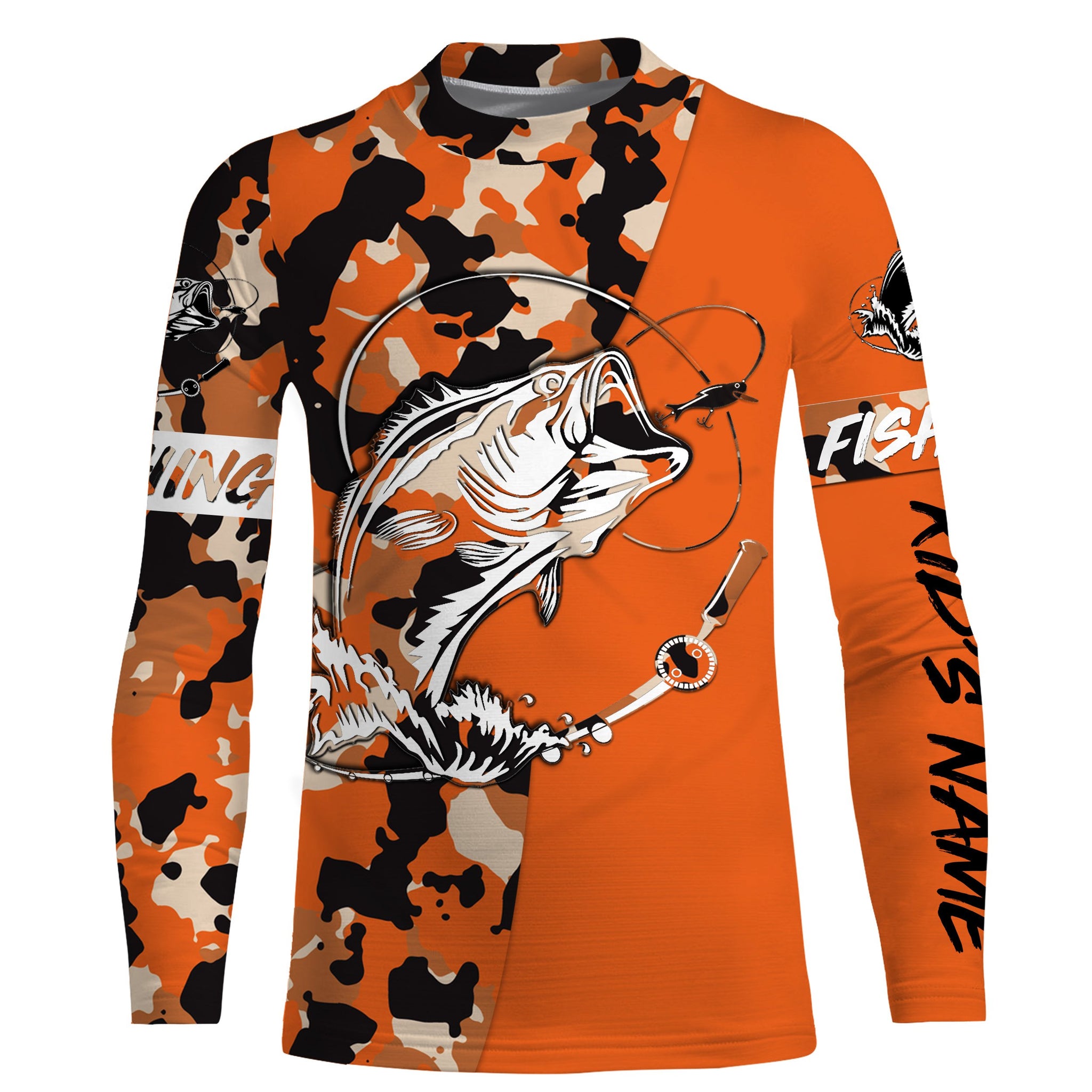 Custom Name bass fishing tattoos Camouflage Orange shirt Performance Fishing Shirt, Bass Fishing Jerseys NQS2479