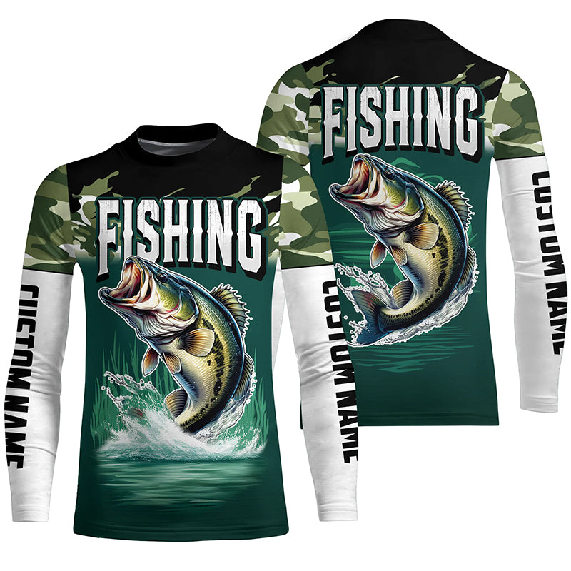 Camouflage Largemouth Bass Fishing Custom Long Sleeve Tournament Shirts, Fishing Gifts For Fisherman IPHW6628