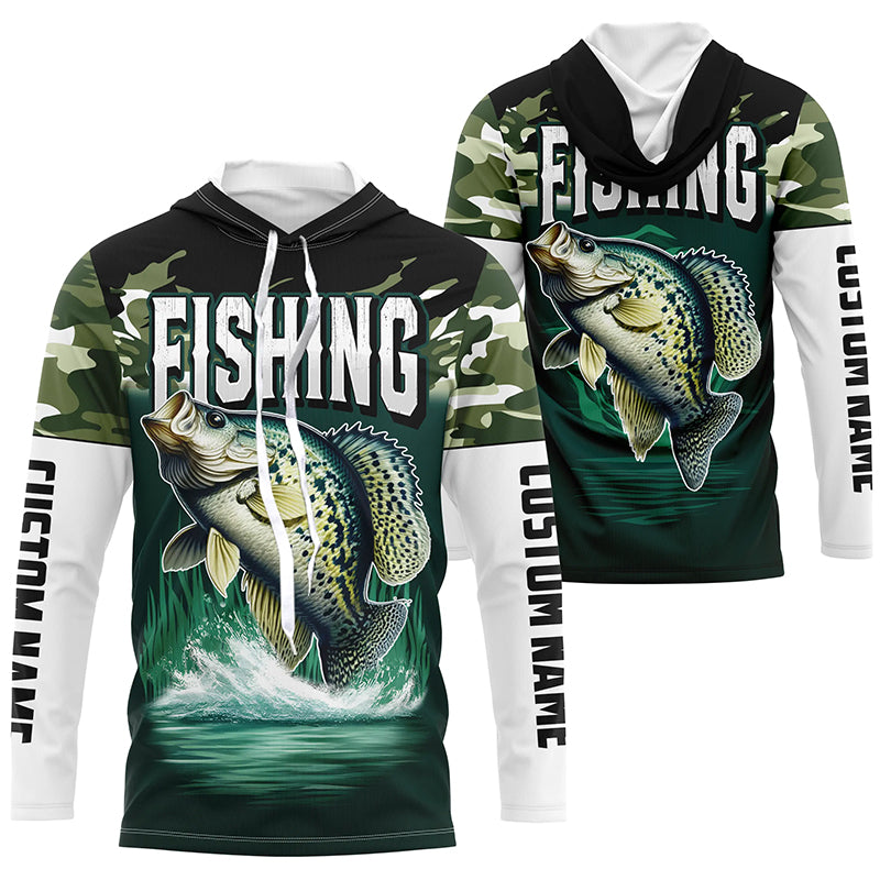 Camouflage Crappie Fishing Custom Long Sleeve Tournament Shirts, Fishing Gifts For Fisherman IPHW6630