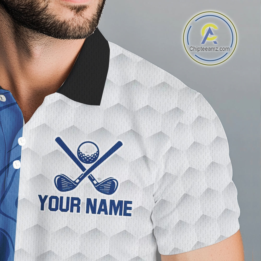 White and Blue Camo Flame Mens Golf Polo Shirt Custom golf attire for men, personalized golf gifts NQS10709