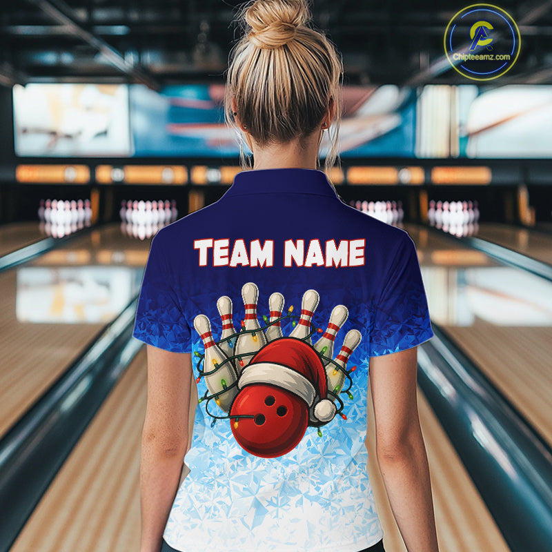 Blue Ice pattern Christmas Team Bowling Polo, Quarter Zip shirts for Women Custom Xmas bowling gifts NQS10969