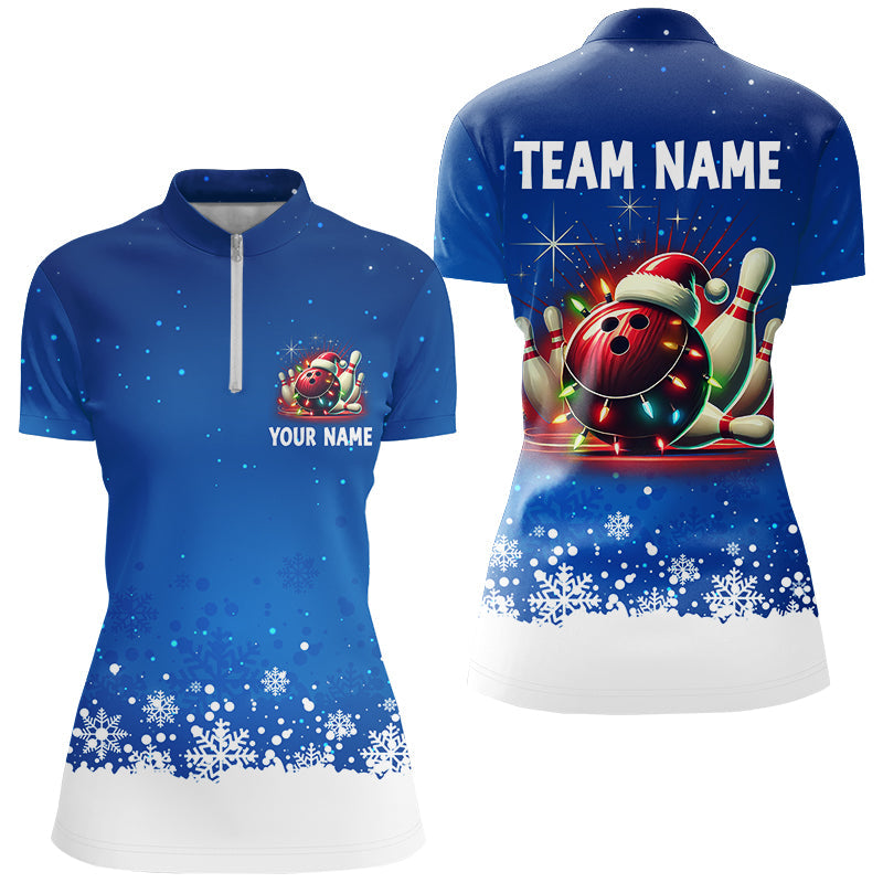 Christmas bowling Polo, Quarter Zip shirts For Women Custom Xmas Team Bowling Jerseys | Blue NQS8964