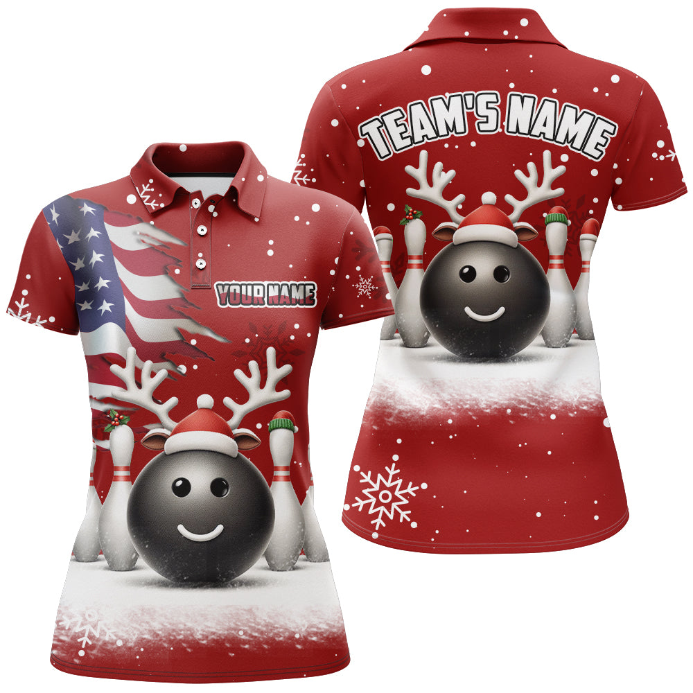 Custom Christmas Bowling Team Shirts Multicolor Polo Bowling Jersey for Women QZT485