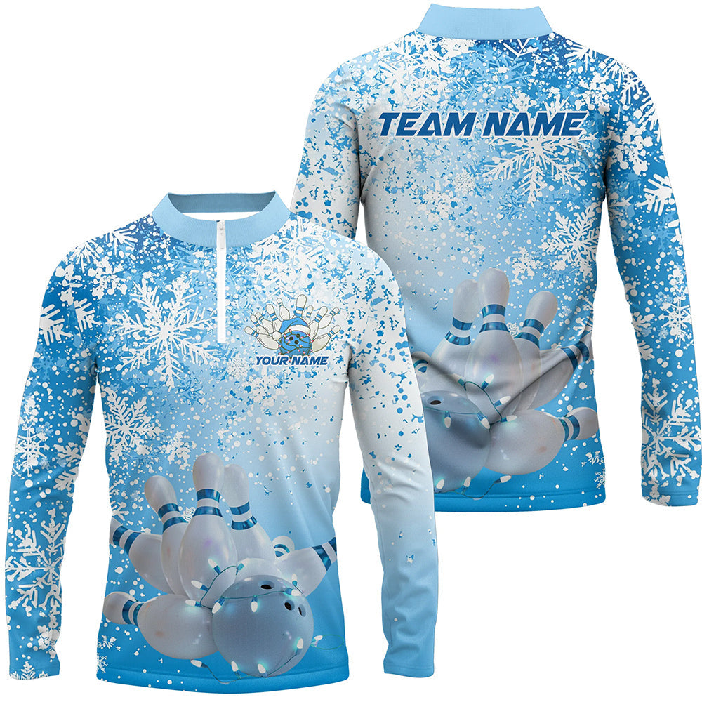 Blue Snowflake Custom Christmas Bowling Shirts For Men, Xmas Bowling Team Uniform Bowler Outfit IPHW7863