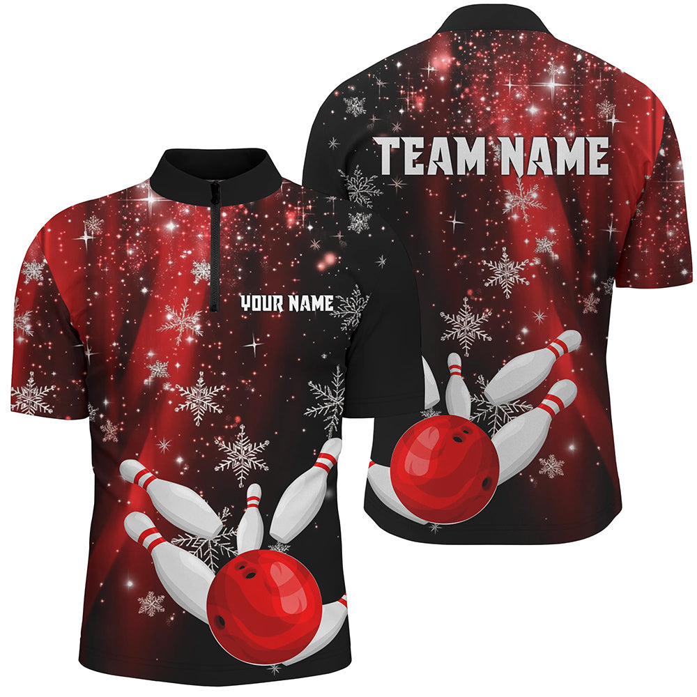 Red and Black Snowflake Christmas Bowling Shirts For Men Custom Bowling Team Jerseys Bowlers Outfit NQS8886
