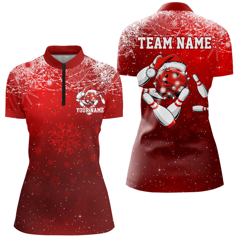 Funny Strike Bowling Christmas Shirts For Women, Custom Xmas Bowling Outfits Team Uniform IPHW7859