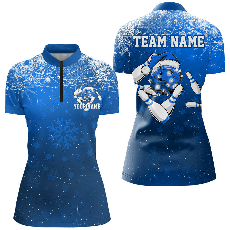 Black And Red Custom Christmas Bowling Shirts For Women, Xmas Bowling Tournament Outfits IPHW7860